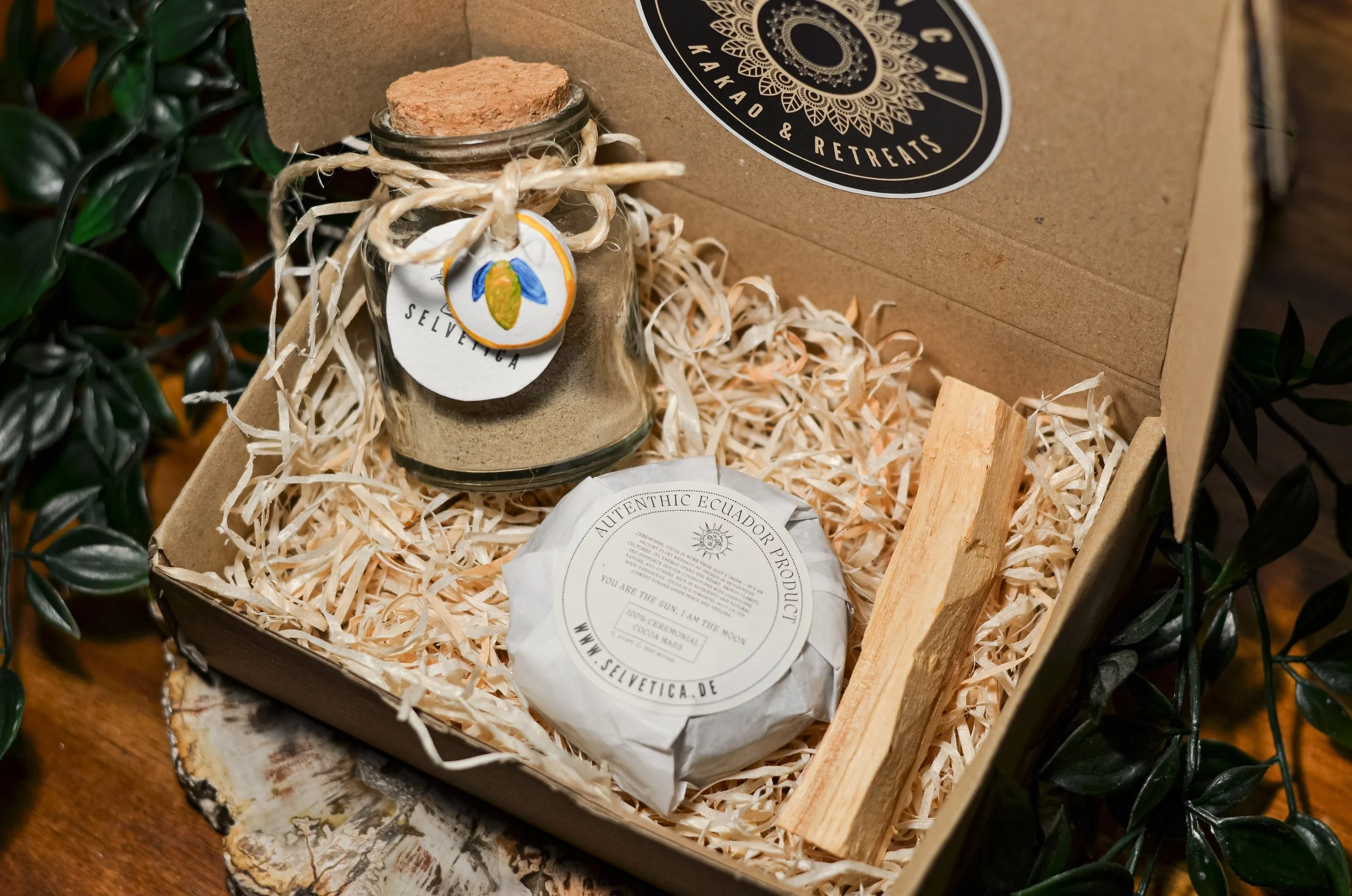 Du findest in unserem liebevoll bestückten Probierset alles, was du für eine kleine Auszeit mit Rohkakao benötigst und was dir die Tür zu einer langen und tiefen Reise eröffnet.
